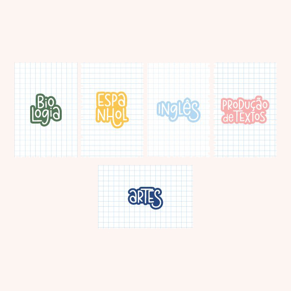 Miolo, capas, cartela de adesivo e estampas para produzir cadernos A5 e 17,4 x 26cm