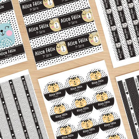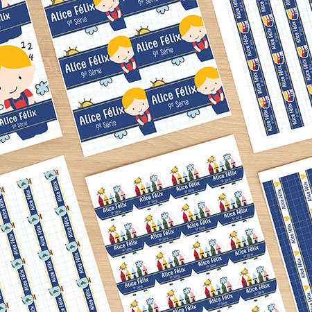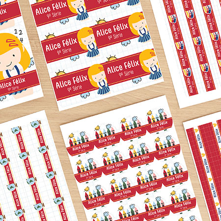 Etiquetas Escolares em diferentes temas para a volta às aulas.
